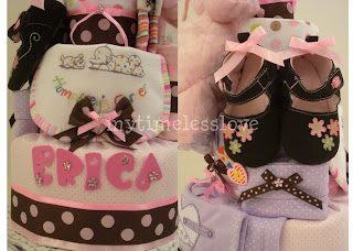 Our DiaperCakes are not mass-produced, nor do they follow a set formula. They are all artistically hand-crafted and assembled with extra loving care pieces. Hence, no two orders are alike. We will work with you to create a one-of-a-kind Diaper Cake or Candy Wrappers, just for YOU!!